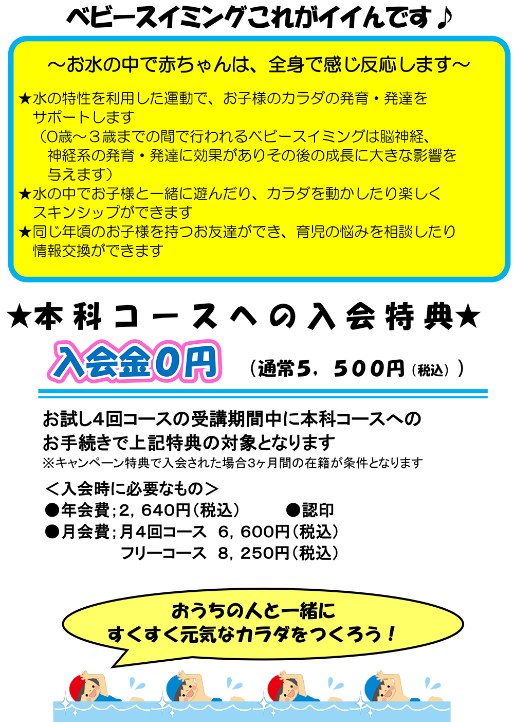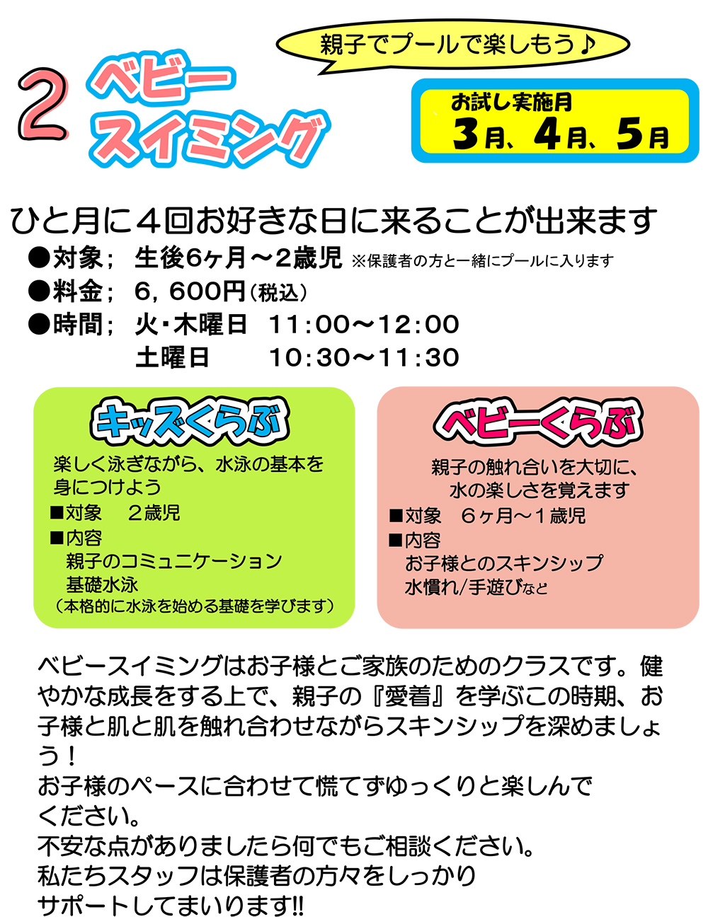 ベビースイミングお試し4回コース実施中